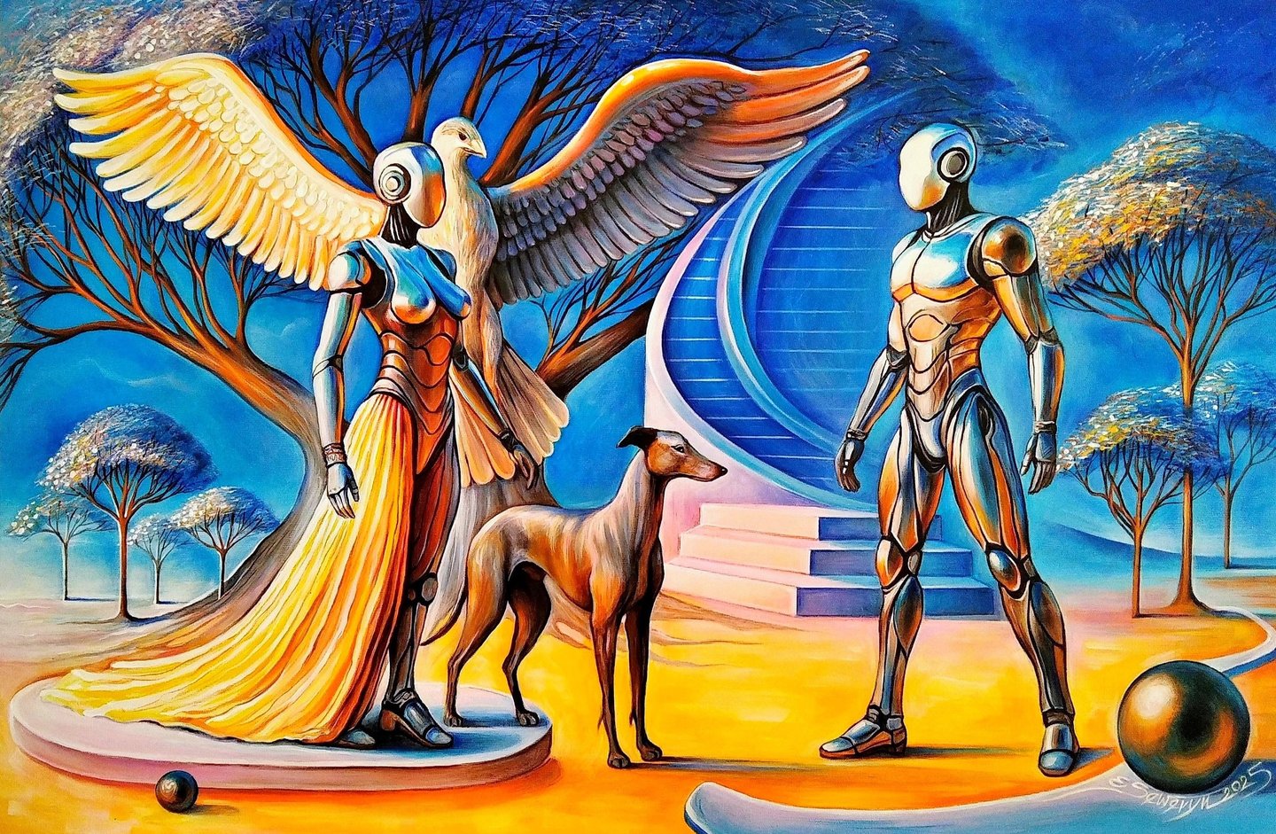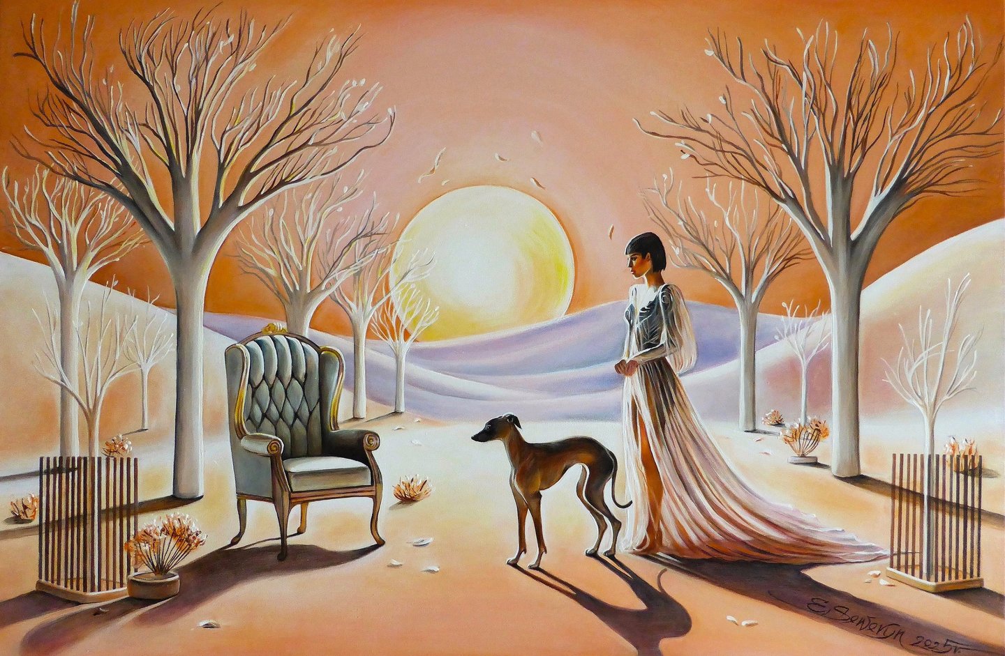 Obrazy moje są próbą interpretacji moich przemyśleń, emocji.